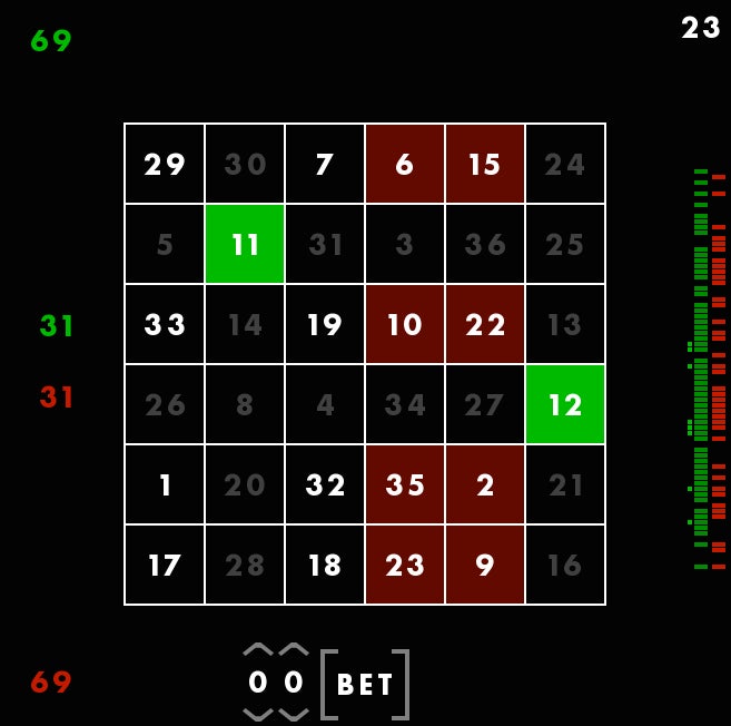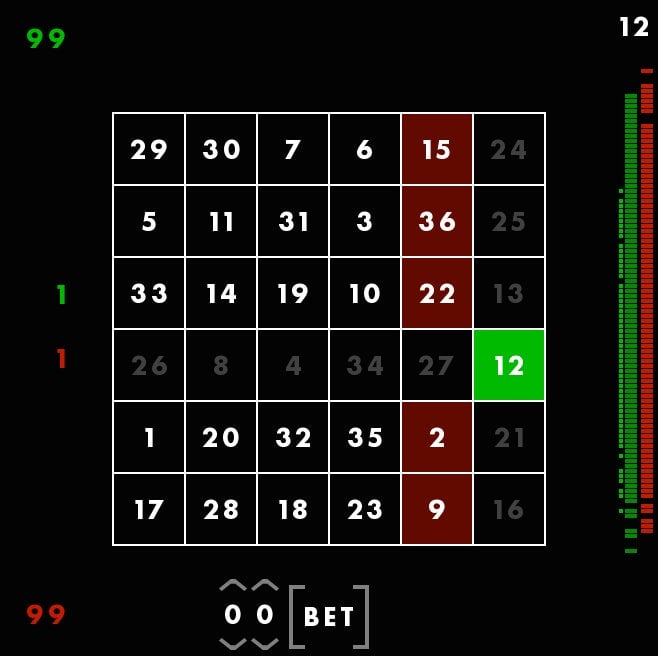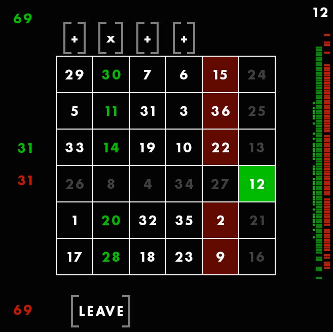 Because I know which column I chose for myself, the game will tell me which row he chose for me and therefore reveal which number Iāve earned. I got a 12.
