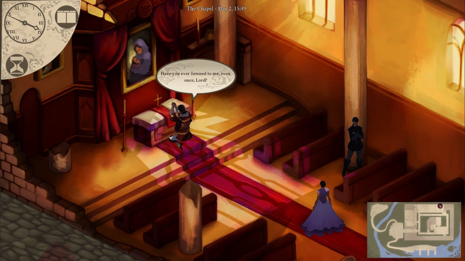 I took a look at the game while at GDC in San Francisco. It’s a really neat concept, and so far the execution seems to be keeping pace. The basic idea is that every character operates on their own schedule in the game’s world, stuck on a path of predetermined doom by their cackling, pointy mustached god. As Ophelia, you gather information and interact with people to change their stories—to, say, stop Hamlet from murdering Polonius and, you know, pretty much everyone else from dying.