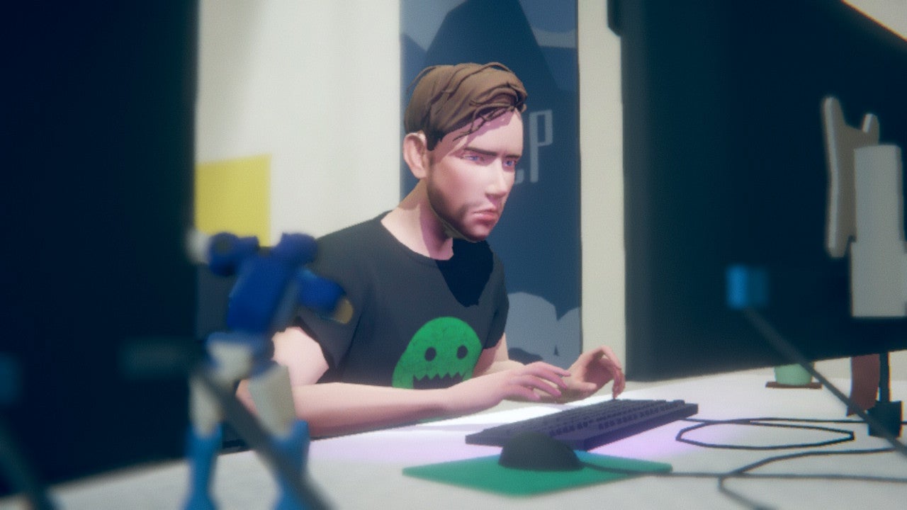 In Jack’s body, John delegates tasks to Jack’s team in a weekly standup. Through dialogue options, you can attempt to figure out who’s doing what task, like coding an NPC’s AI (which John refers to as “IA”) and finalizing the art on background assets. I struck out on every one. Once you fumble your way through the meeting, you have a one-on-one with Jack’s manager, a stern yet sharply-dressed man named Derek, who tells John the game’s publisher is visiting in a few weeks.