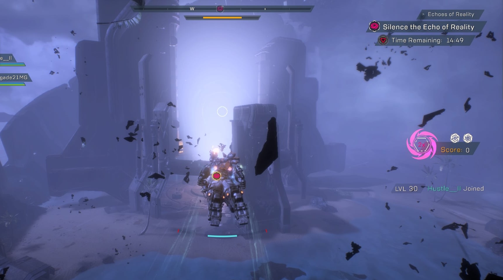 Once that’s complete, it’s time to set off for Vara Brom. She sits at the northern edge of the map in, you guessed it, another arena, the biggest of the four. She’s giant, slow-moving, and seemingly not very dangerous save for a set of fire attacks. One of them turns the floor to lava. The other, which shoots out into the air, requiring you to take cover, will almost instantly kill you. Unless you’re paying close attention, it’s hard to know which she’s using, but unless you’re playing on the highest difficulty, it probably won’t matter. Echoes of Reality can be so hard to navigate the first few times through there was one occasion on which Vara was already half-dead by the time I caught up to my teammates, and why would I want them to wait when there’s only a minute or two left on the timer anyway?