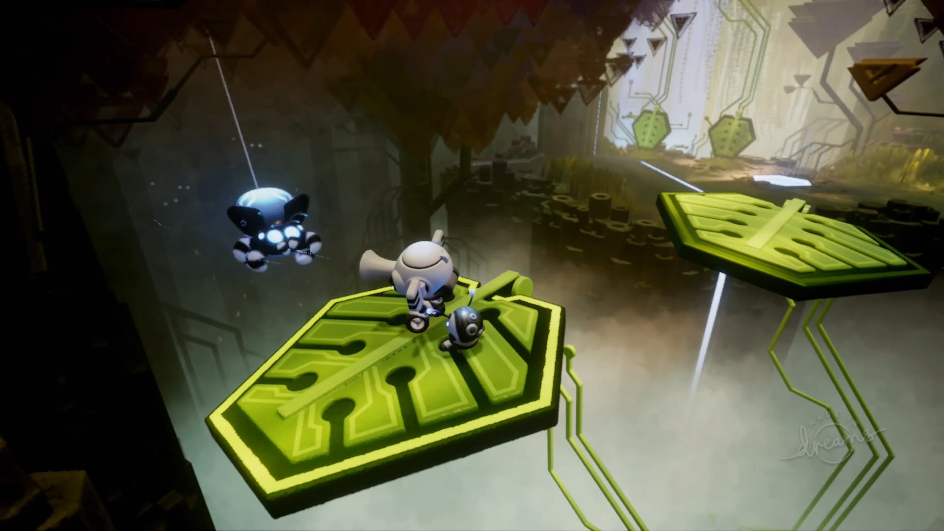 The third segment of Art’s dream is more of a puzzle platformer. It stars D-Bug and Ele-D, a pair of toy robots on a mission to deliver a power core to an even larger, more impressive toy robot.