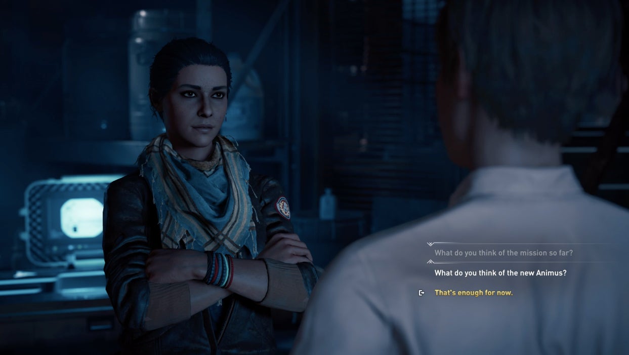 Here’s another choice that the designers of Odyssey and other recent Assassin’s Creed games wrestled with: whether to include playable sequences in modern day. While the bulk of every Assassin’s Creed game has occurred in a historical setting, all have included sequences set in modern day. From the start, they were divisive. Modern-era gameplay tended to involve walking, talking, and maybe climbing around in a few rooms. None of it was nearly as exciting, dynamic or, presumably, as marketable as the parts of the games set in the Crusades, the Renaissance, or the American revolution. Some people (hello!) dug it. Others wanted it gone.