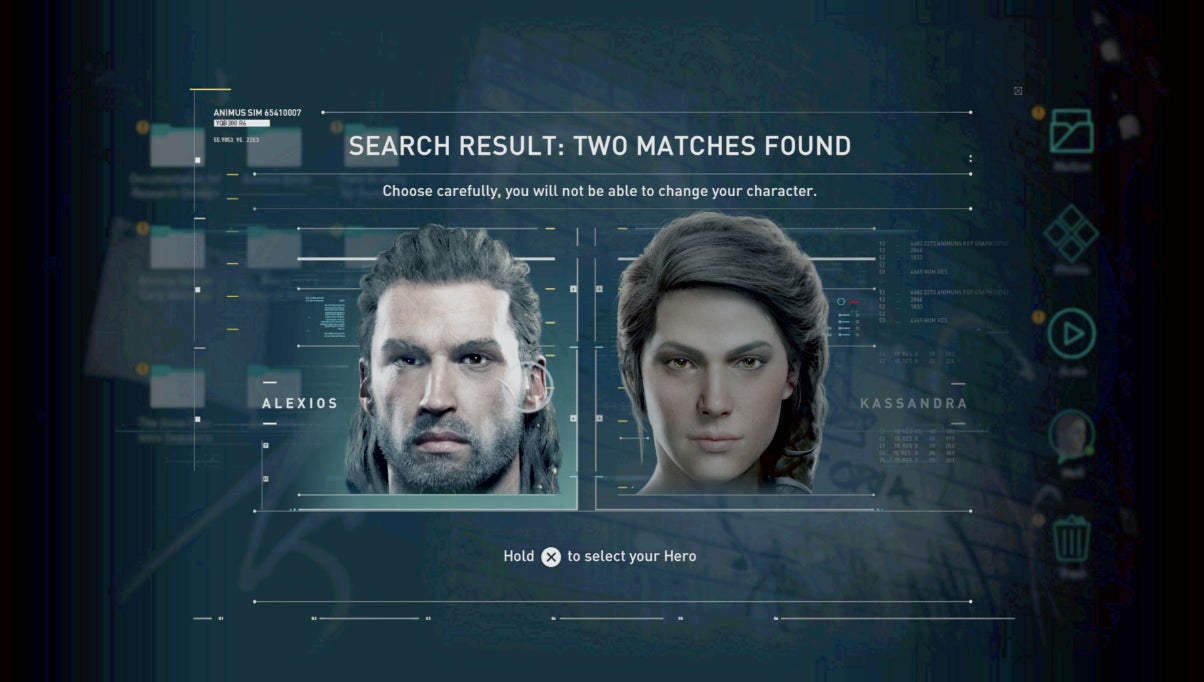 Odyssey bent the rules further. It introduced the idea that players could choose a character and the dialogue that character spoke, justifying it in-game with something or other about the vagueness in what the Animus could detect. As an aside, Côté said that about two thirds of players have chosen to play as Alexios, though he and Dumont had expected a 50/50 split or, if anything, a skew the other way. “I’m surprised by the numbers,” Côté said, “because most of the people I talk to play Kassandra.”