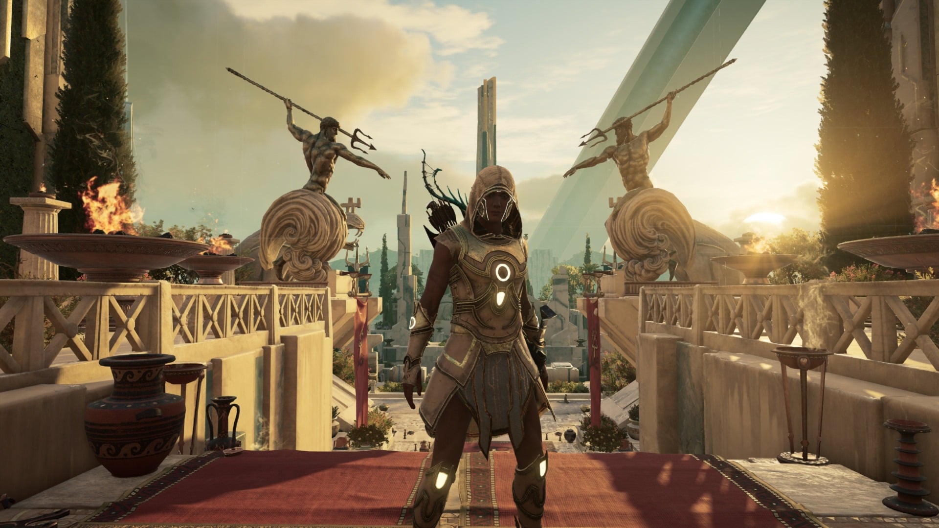 All of the Fate three-parter is presented as some form of simulation orchestrated by an Isu named Aletheia. As opposed to the rest of Odyssey—and the rest of just about every other AC game—players are not meant to think of what happened in “Fate” as a historical character’s lived experiences. Rather, Aletheia explains to our main Odyssey protagonist that these trips to Elysium, Hades, and Atlantis are not real and instead are training to wield a special item called the Staff of Hermes, which makes its wielder immortal. That has put a cloud of confusion over these installments. If Kassandra knows she’s in a simulation, why is she getting emotional about seeing people in Hades who died in the main game? When she’s going to Atlantis and seemingly hanging out with actual Isu, is she instead just meeting a simulation of them? If they’re just simulations (which they are), then why? Only at the end of “Judgment” does Aletheia clarify why so much of what happens in the expansion seems real to our playable character, and while the answers make sense, they come off as a contrivance. If that contrivance was necessary to somehow establish a playable Isu adventure, so be it, but it doesn’t make the framing of the “Fate” any less awkward.