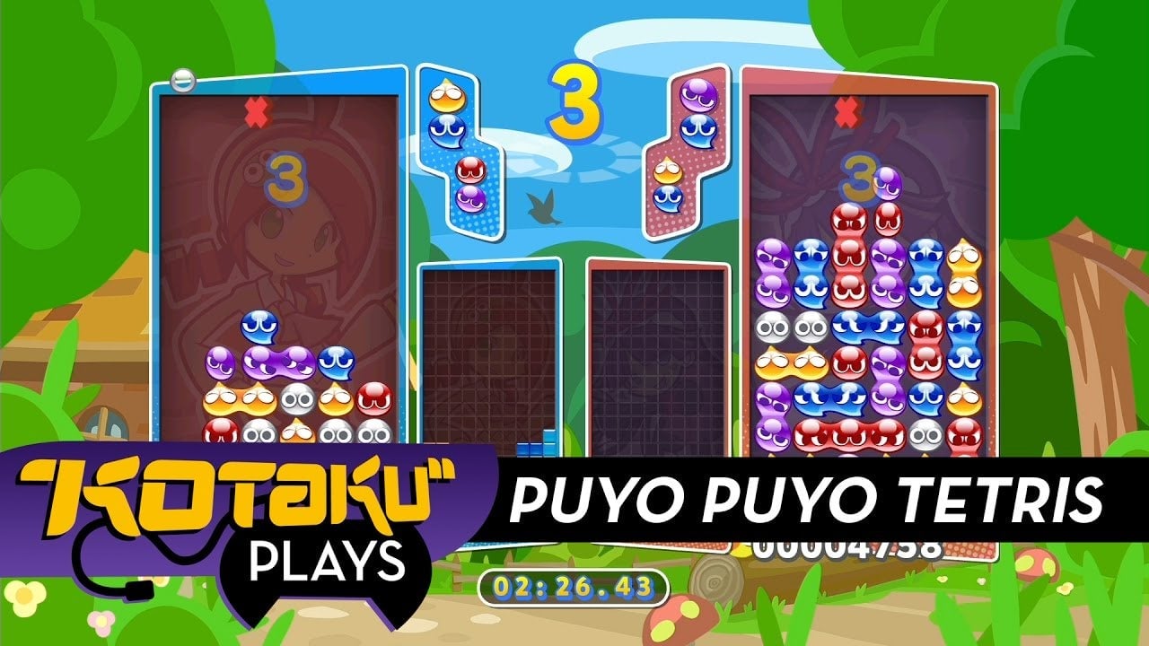 While I’ve still not gotten the hang of Japanese puzzle classic Puyo Puyo, I‘m pretty good at Tetris when I concentrate. Recording a Kotaku Plays video is not a good way to concentrate, but I don’t mind losing when I get to share the colorful sights and spirited sounds of Puyo Puyo Tetris. Out this…
