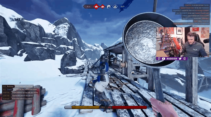 Medieval brawler Mordhau is supposed to be played with a controller or mouse + keyboard, but as with most games, a bit of tinkering can expand those options somewhat, up to and including the use of an actual cast iron frying pan. Here’s Rudeism, no stranger to this kind of stuff, rigging up some motion…