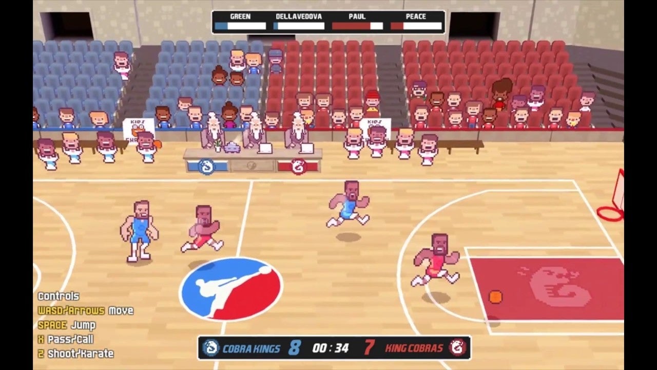Welcome to Draymond Green’s Shut Up And Slam Jam Karate Basketball, a basketball game where you must score, but also kick dudes in the figs. Made for Ludum Dare 37 late last year (but only released online earlier this week), it supports four players in local multiplayer, and is not screwing about with the combat…