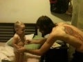 This adorable baby gets his by his father’s Hadouken, and lives to giggle the tale.