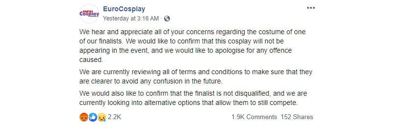 At least EuroCosplay is now looking at ways to avoid this in the future, by being more explicit in spelling out the rules of entry into the contest.