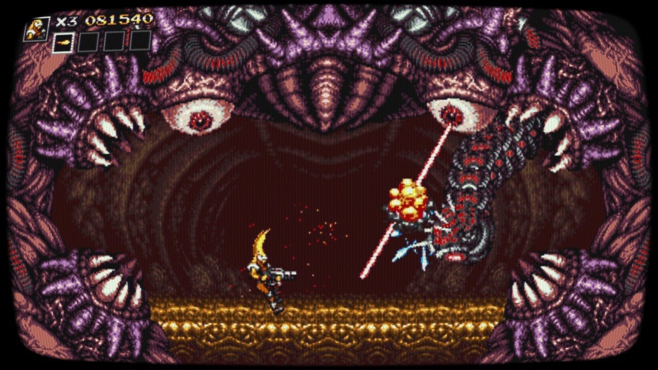 Blazing Chrome does a solid job of honoring the 16-bit action games from which it draws direct inspiration, while providing modern-day players the benefit of making it all look prettier and run more smoothly. Though it’s packaged like the Contra arcade games, with continue screens and arcade cabinet CRT filters for the visuals, Blazing Chrome plays most like 1992’s Contra III: The Alien Wars on the SNES. You navigate a handful of stages blowing up enemies and dodging their attacks, each of which ends in a beautifully-animated boss fight where the environment itself can be just as deadly as whatever’s chasing you down.