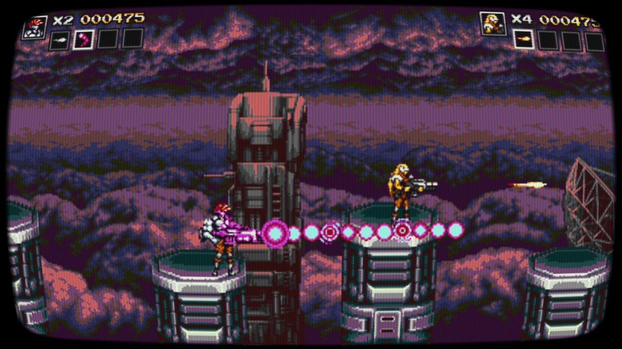 The run-and-gun action platformer, out today on PlayStation 4, Xbox One, Switch, and PC, is set against a backdrop of a futuristic world in which humanity has been overrun by an army of evil cyborgs. Blazing Chrome succeeds at recreating the experience of sweatily fumbling for quarters while hunched over an arcade cabinet screen on which a giant number is slowly counting down, taunting you with the knowledge that all your work will be for naught if you don’t pay up quick.