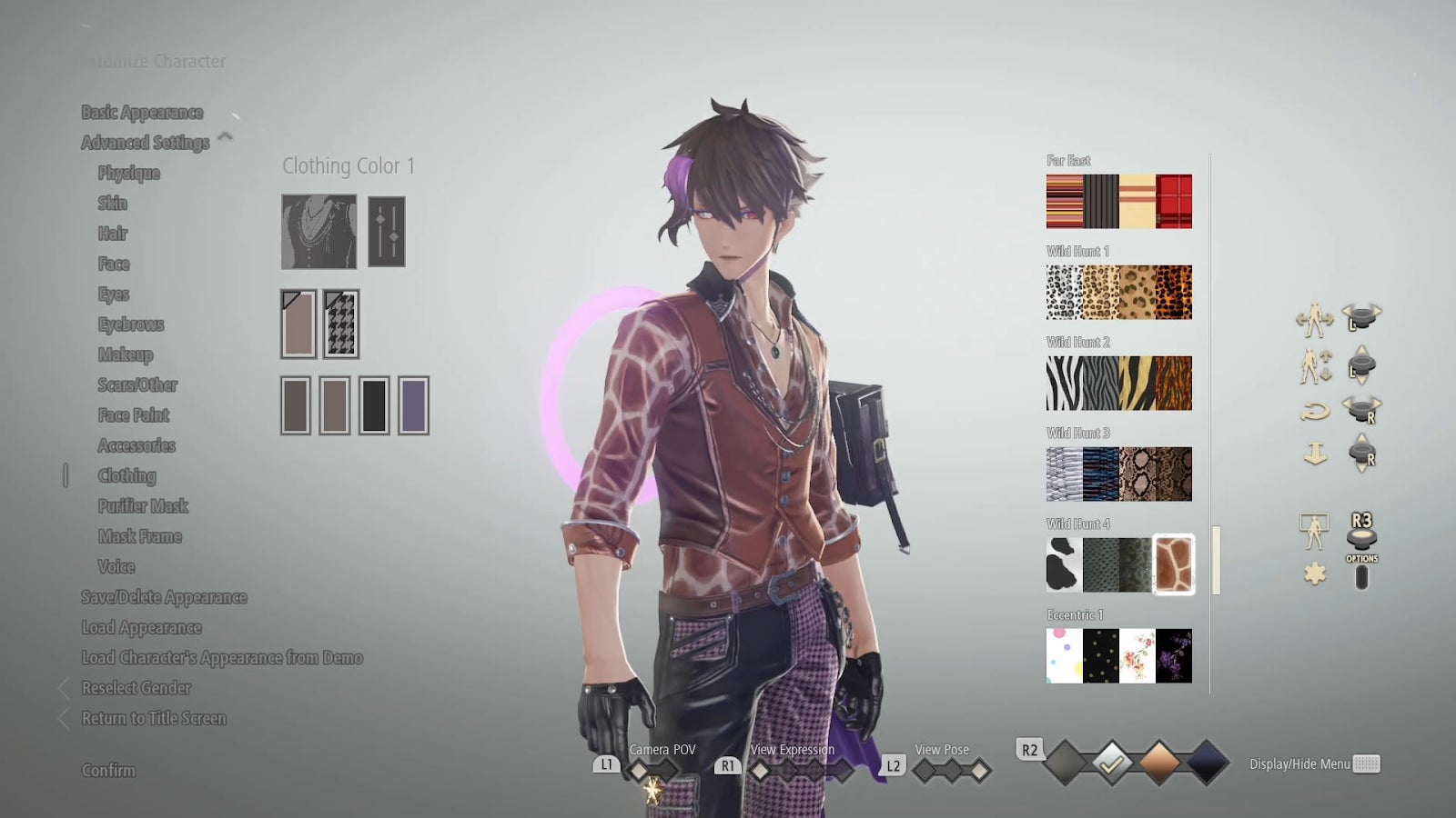 There are only a handful of outfits in Code Vein’s character creator, which is good, because each one can be customized with dozens of different colors and patterns. Flat colors. Glowing colors. Plaids. Animal patterns. Metallic sheens. Vertical stripes, horizontal stripes, and checkerboard.