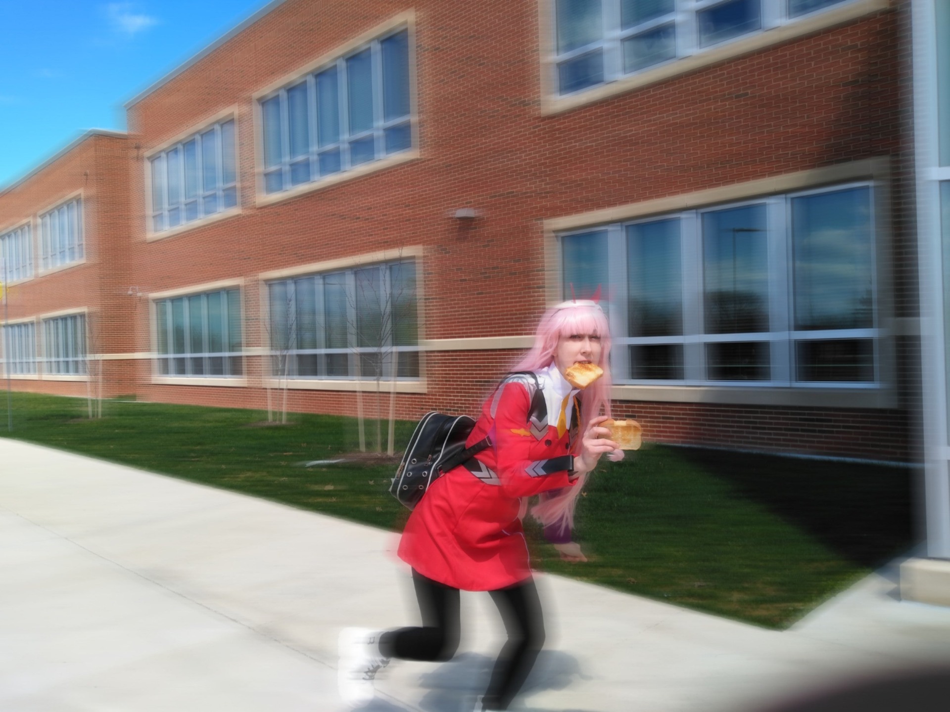 With that off the table for the next few months, 2020’s theme—having fun with the trope of “anime characters running late for school with bread in their mouth”—has drawn a ton of participation, as it gave cosplayers a chance to work on something that could be seen and shared with a big audience (and which was also a very good and dumb theme to play with).