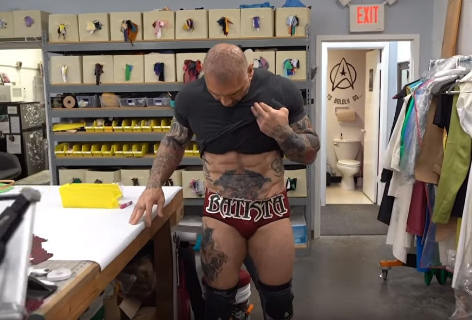 When it came time to plan his last ever WWE outfit before announcing his retirement at this year’s Wrestlemania, Guardians of the Galaxy star Dave Bautista knew exactly where to turn: some expert cosplayers and a very big pair of Lebrons.