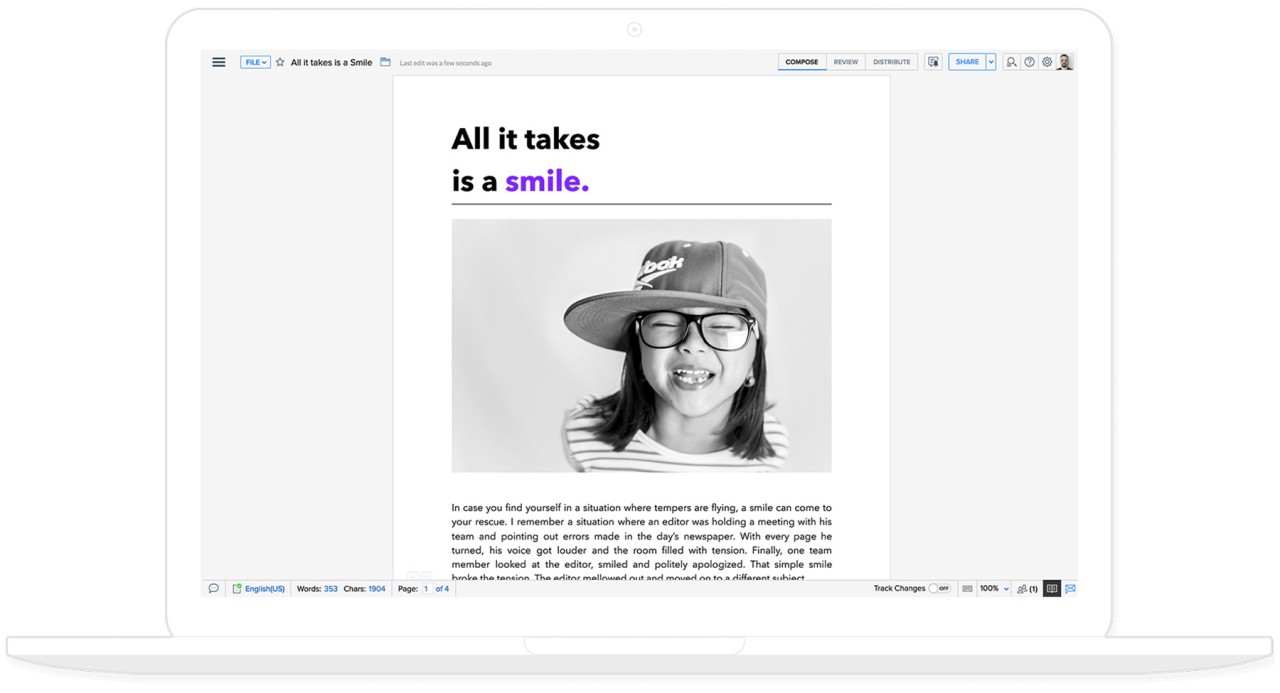 The latest formatting features include multi-column formatting, personalized borders, section breaks, wrapping images, and chart and table formatting. You can make fillable PDFs directly, to automate them using conditions, formulas, sub-forms, or text fill-in. Recurring document templates, e.g., agreements, proposals, or reports, may be created and instigated by business events or workflow approvals. Publishing is featured; it is possible to directly send documents to WordPress, Medium, and Blogger via a single click.