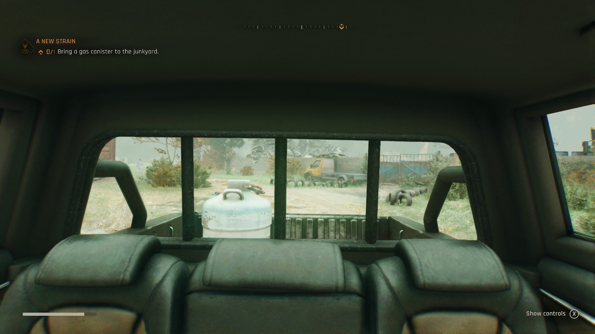 Once I got a big can of the super gas, I took it to a nearby truck and popped it in the back to more easily get it to my destination. Weirdly, the rain outside was gone. Props still looked wet, and I could hear the rain falling, yet nothing was falling from the sky. When I got in the truck I discovered that, as far as the game was concerned, it wasn’t raining anymore, which was awkward as my windshield was still being drenched in water, but the wipers wouldn’t work. The only way I could get the wipers to function was to run over zombies and get enough blood on the glass to trigger them. Eventually, I just drove backwards, as the truck’s rear window wasn’t covered in rain.