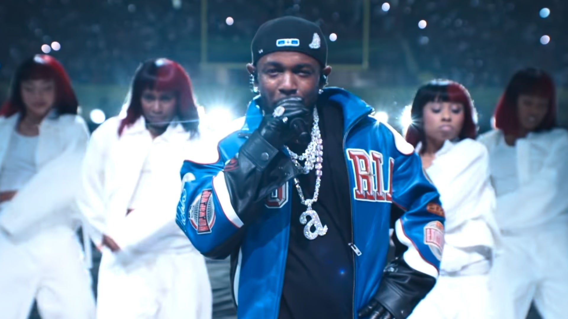 The rapper was dragging more than just Drake at the Super Bowl this year