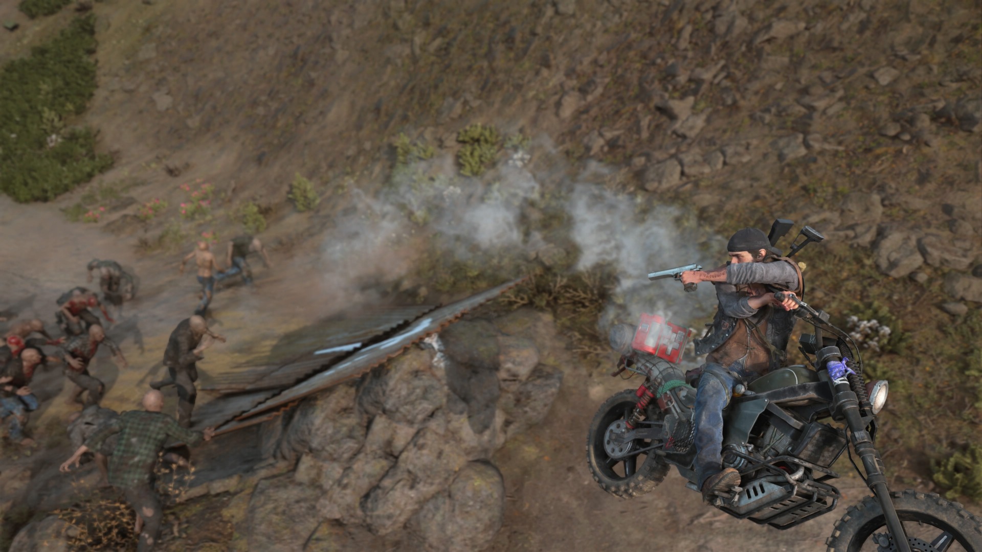 Playing Drifter’s Run reminds me of what bummed me out about Days Gone in the first place. In another open-world game, this would be the sort of thing that would be integrated into several side missions—fun nonsense that just lets you toy around with the world and the tools you have to navigate it. But Days Gone is a grim story of survival that endeavors to remain tonally consistent, perhaps to a fault, since even here, in this nonsensical obstacle course isolated from the main game, there are stakes. You’re delivering bandages to people that need them. Life-and-death stuff!