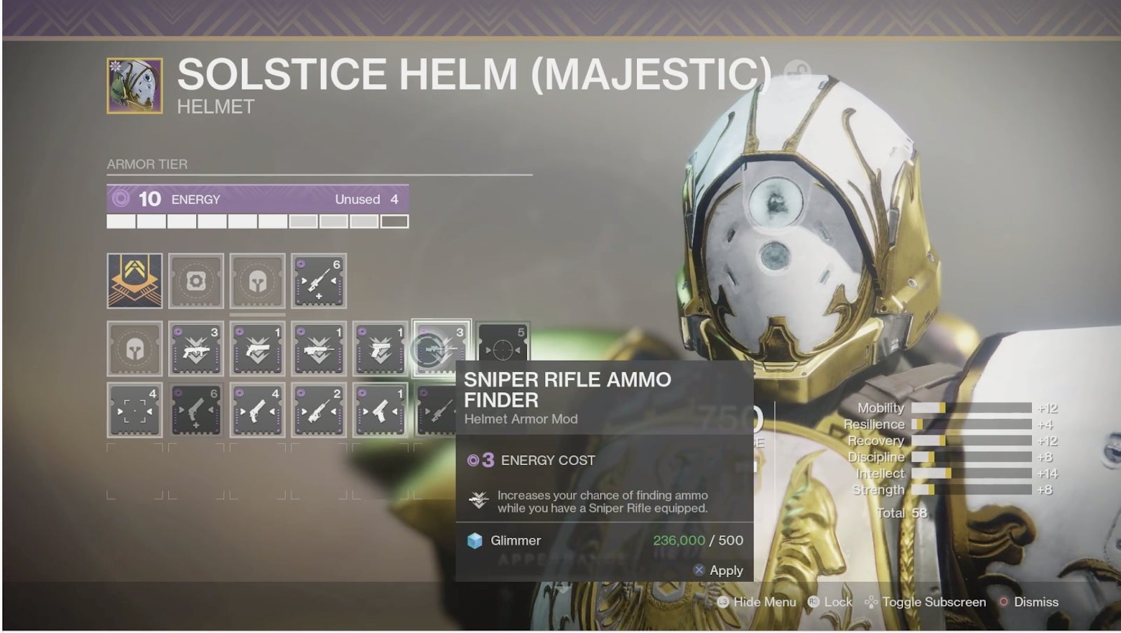 Basically, mods you equip to your armor—like a traction mod that boosts your mobility stat, or an ammo finder mod that makes it easier to locate special ammo when you have a sniper equipped—will cost a certain amount of energy. If you don’t have enough energy to equip a mod, you’ll either have to change your mod loadout or upgrade your armor tier, which will increase your energy level. And of course, energy type matters, so void armor can only accept void or neutral mods—a decision that unfortunately may just extend grind time.