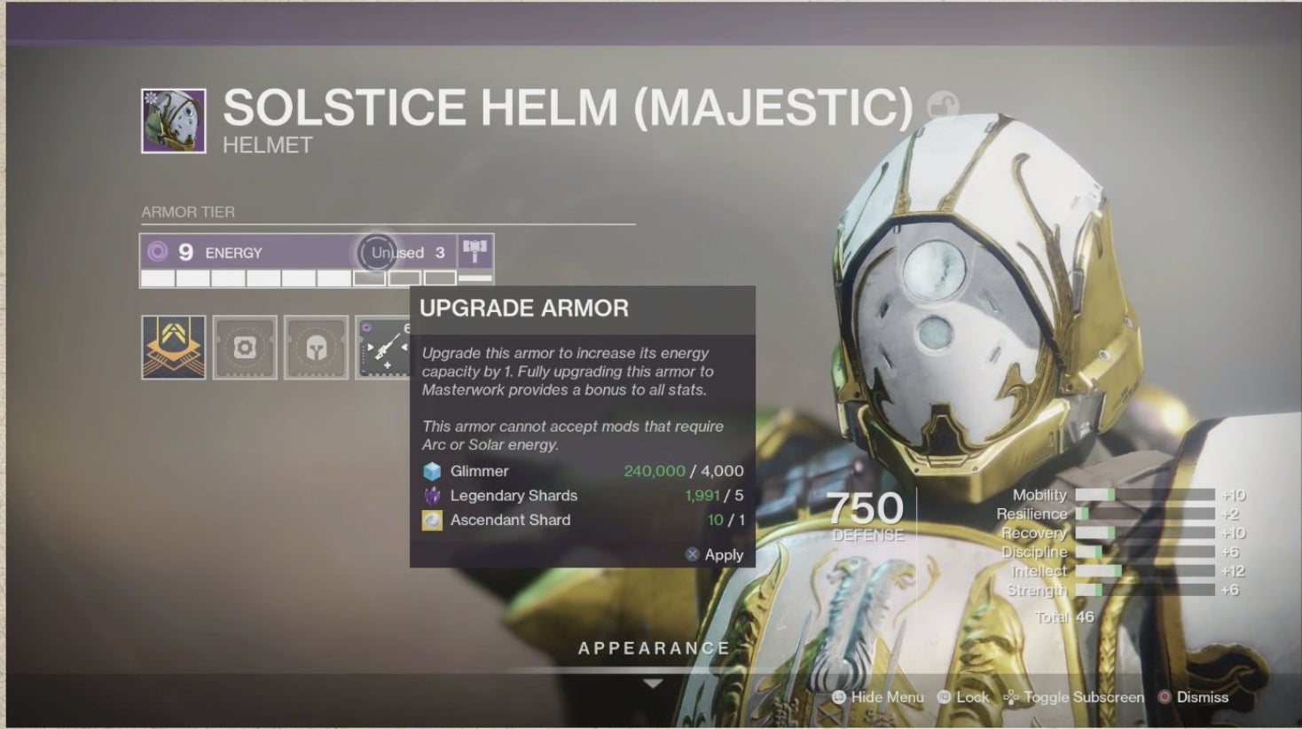 In Shadowkeep’s new system, each piece of armor will start with two numbers attached: a Power level and an Energy level from 1-10. Power functions exactly as before, but Energy is a new stat that functions as a budget for mods—which replace the basic perks armor used to come with.