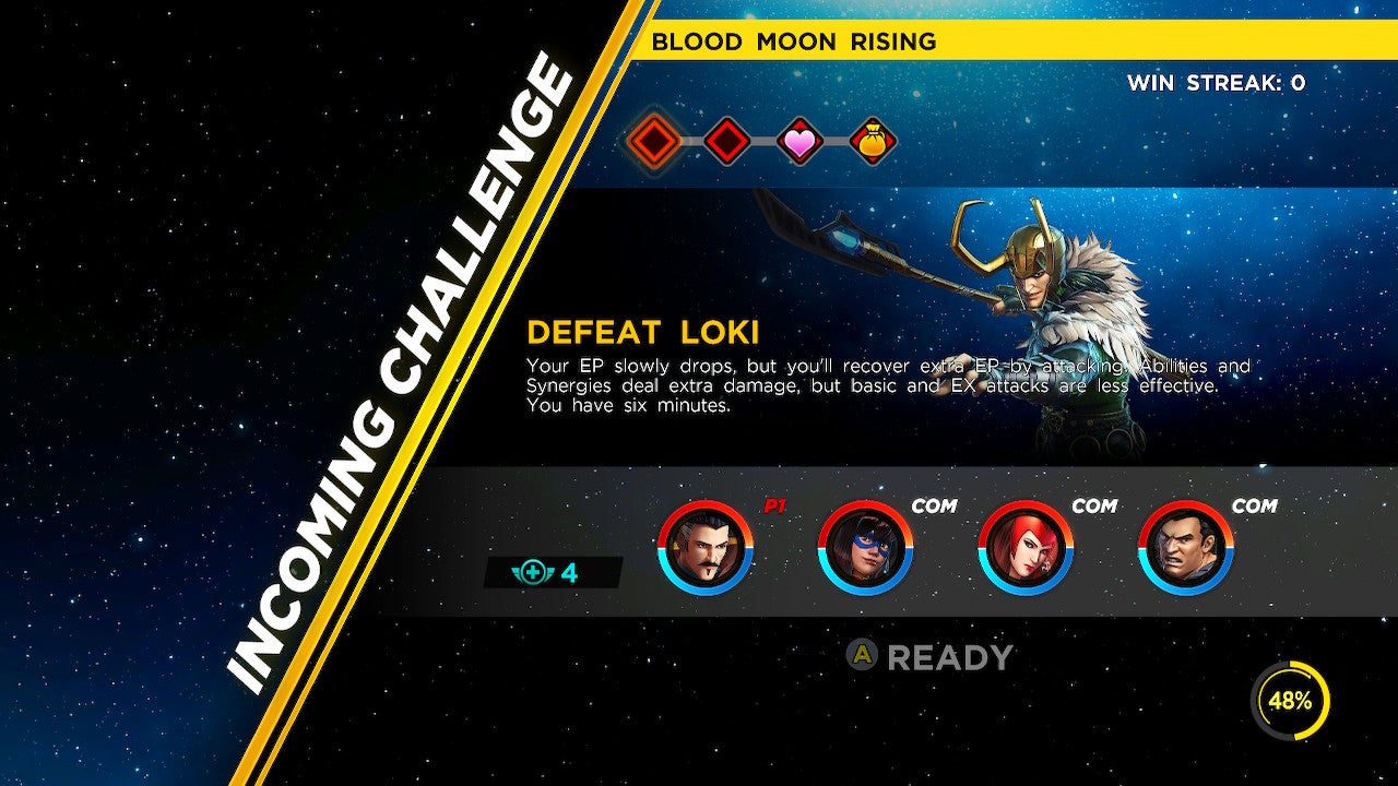 Gauntlet mode is a series of multi-stage challenges that players can complete in order to earn S.H.I.E.L.D. Tokens and, for those who have purchased the $19.99 DLC pass, unlock the four Marvel Knights characters. Each Gauntlet consists of multiple stages, each with specific goals. One stage might be a boss battle. The next could require players defeat a certain number of enemies within a set time limit. Sometimes the party’s health regenerates between stages. Sometimes it does not. Players who do not purchase the DLC will nonetheless gain access to a low-level Gauntlet challenge to give them a taste of what the mode is like. Once a Gauntlet is completed, it can then be played in survival mode, cycling through its stages until the player’s party perishes.