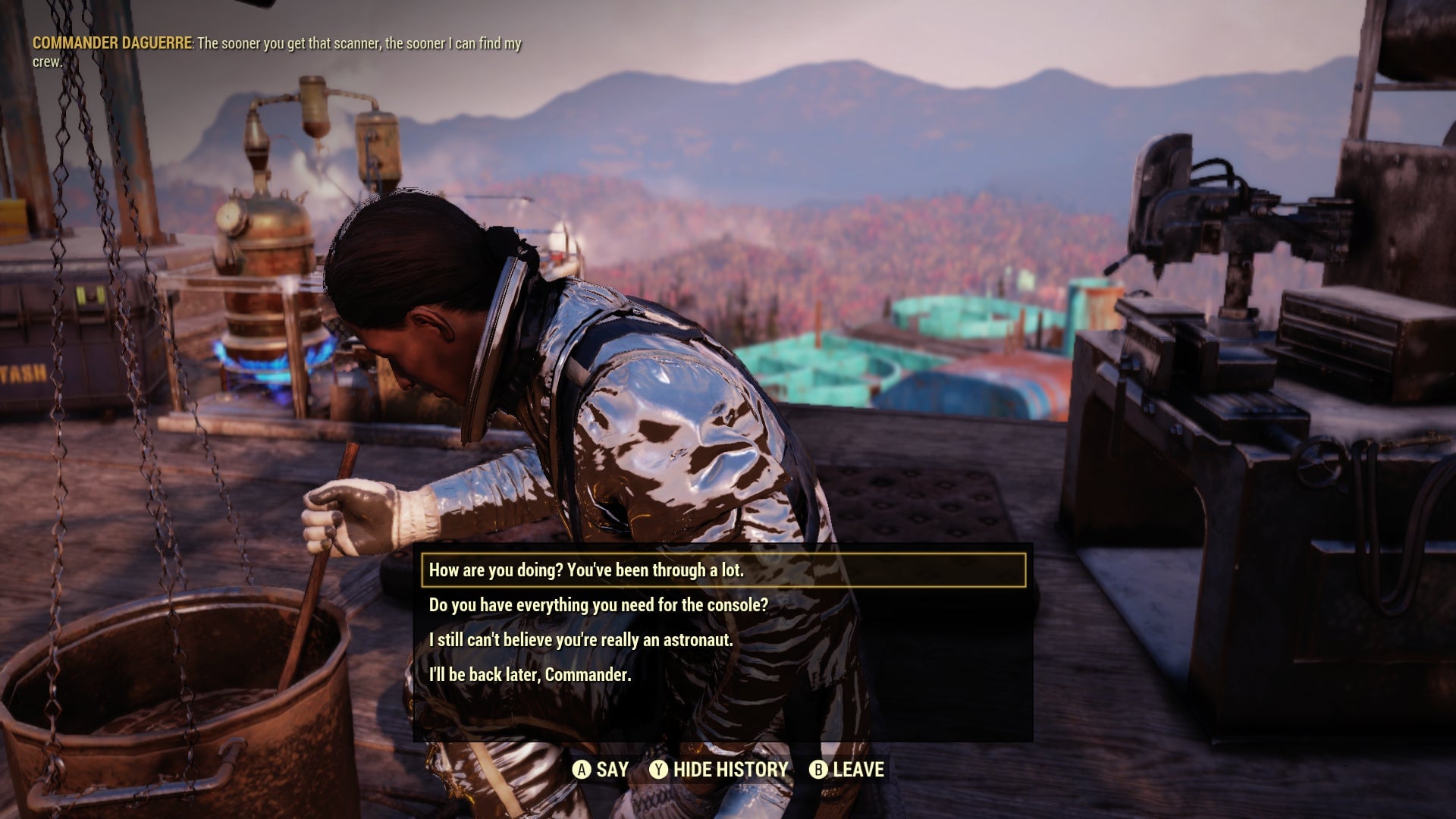 There are glimmers of something special in the expansion. New companion quests allow you to bring an NPC back to your camp and help them on their own journey. After rescuing Commander Sofia Daguerre, an astronaut who mysteriously fell out of the sky after spending decades in cryosleep, she set up shop at my place while hunting for clues about what happened to the rest of her crew. Her questline is long and filled with busy work, but it results in some interesting revelations that allow for equally interesting choices. The relationship I created with her wonât change the trajectory of the Wasteland, but it did give me a deeper connection to it.