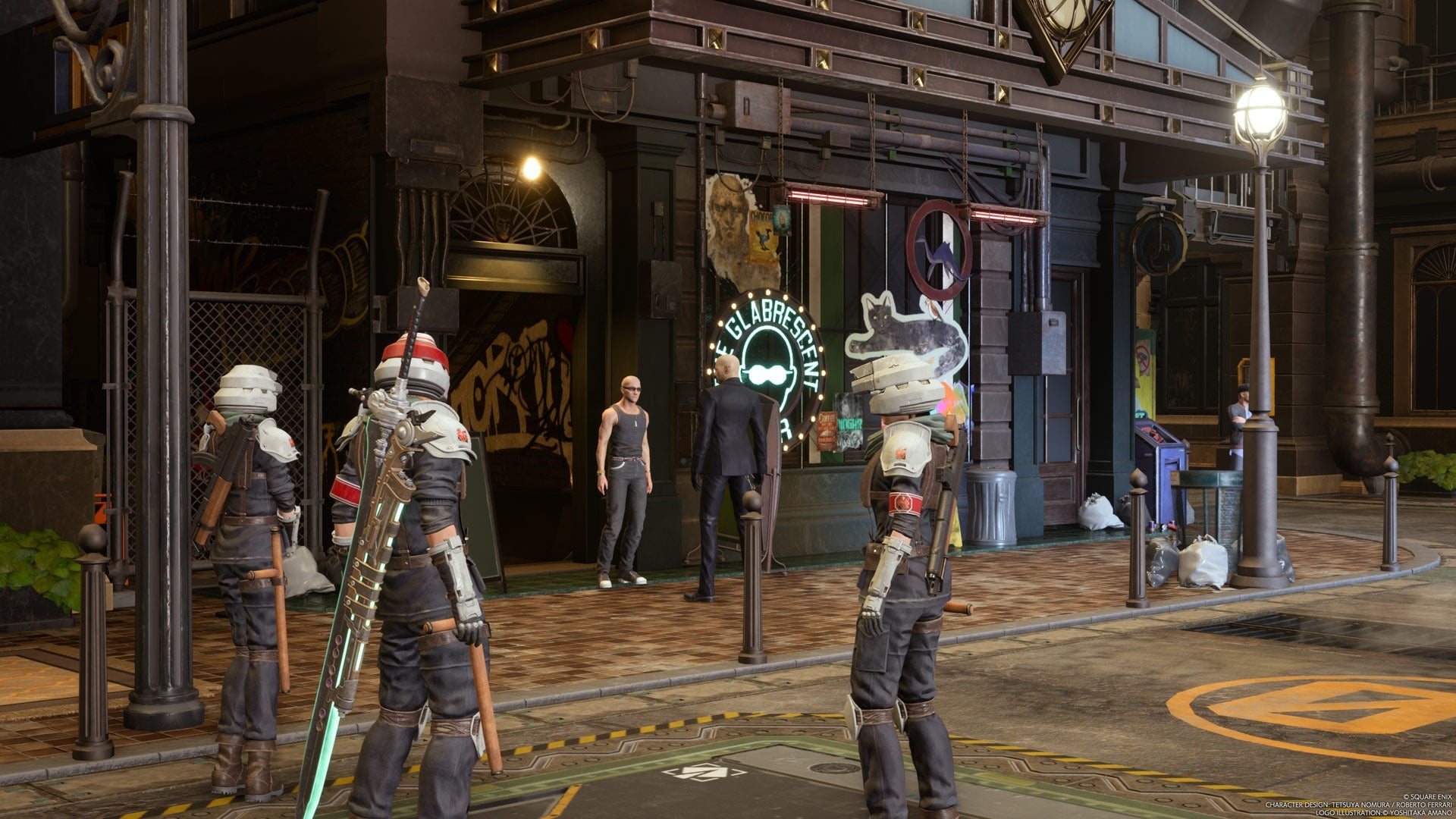 When you enter the shopping center, you’ll spot Rude from the Turks going down into a bar. Follow him downstairs and some more troops will join you after the cutscene.
