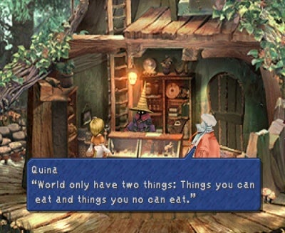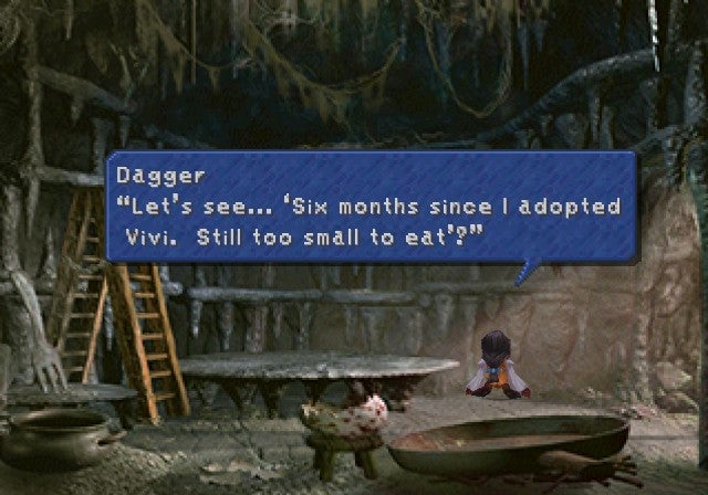 This game is so damn dense: One of the most remarkable things about Final Fantasy IX, even in today’s landscape of 400-hour open-world RPGs, is just how jam-packed with stuff it is. Blink and you’ll probably miss some charming detail, be it the friendly monsters who just want you to feed them items (a Gau reference, perhaps?) or a mission to reunite a family that many people didn’t know existed. There’s even a quest to go find coffee. Final Fantasy IX is full of unique scenes and mini-games (sword-fight for a crowd! Swing in a cage!) that make the game feel special. Whereas modern games are all about reuse of systems and mechanics, Final Fantasy IX feels like a grand, handcrafted adventure.