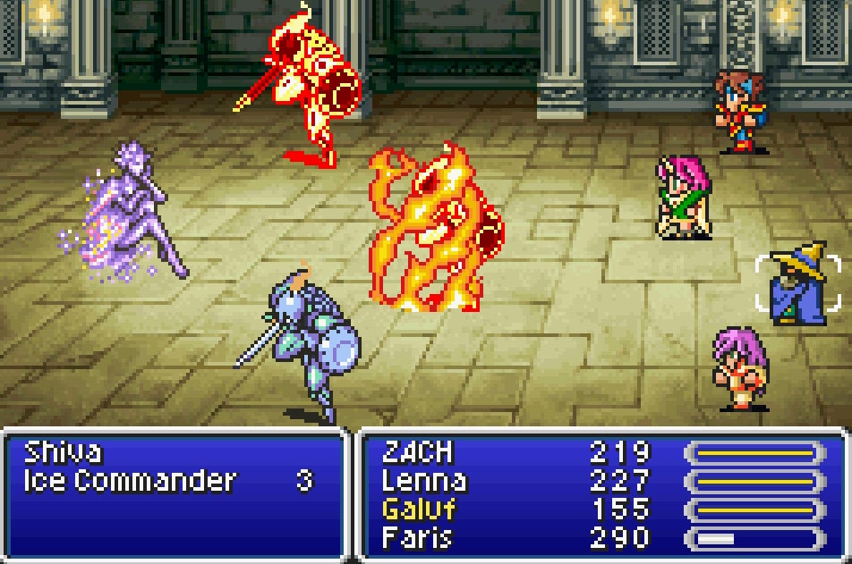 What began as a curious interest in the sole retro Final Fantasy game Iâd missed evolved into a remembrance of what I used to love about the series. It wasnât the amazing production values or the elaborate combat system, which have become such a big focus of the Final Fantasy games. FFV had a party of characters I cared about and a story that made me feel like I was invested in what happened. As always, the fate of the world is at stakeâafter all, Final Fantasy has to live up to the âfinalâ part of its name. But there wasnât a massive cast of characters that make an appearance, then get put aside in favor of the main party which usually consists of three primary members. Final Fantasy V concentrates on four people: an adventurer named Bartz, a princess named Lenna, a pirate called Faris, and an amnesiac warrior Galuf.