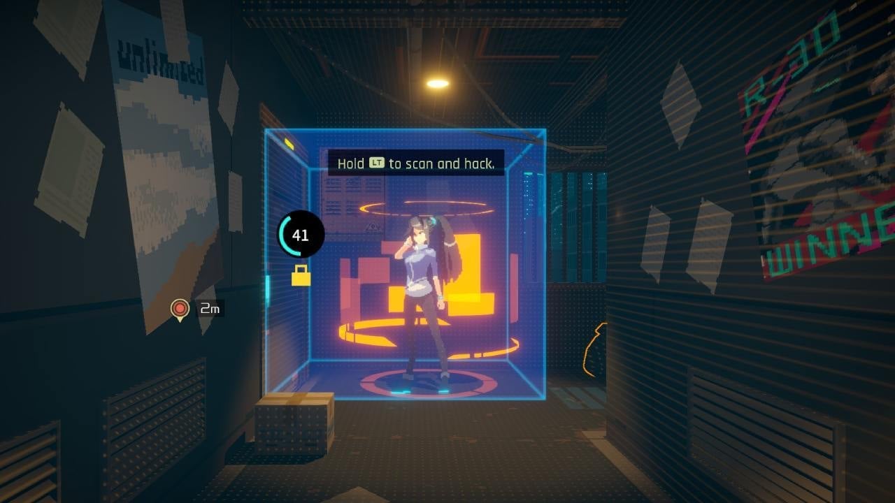 The game’s combat is just as “smoking sexy style” as the trailer makes it seem. Although it took a bit to figure out the timing for dodges, I did a serviceable job of pulling off sick laser-sword combos on a bunch of enemies, which was satisfying as hell. There’s also a hacking mechanic that lets you not only unlock new story pathways, but also scan an enemy’s stats before you hack and slash your way through them.