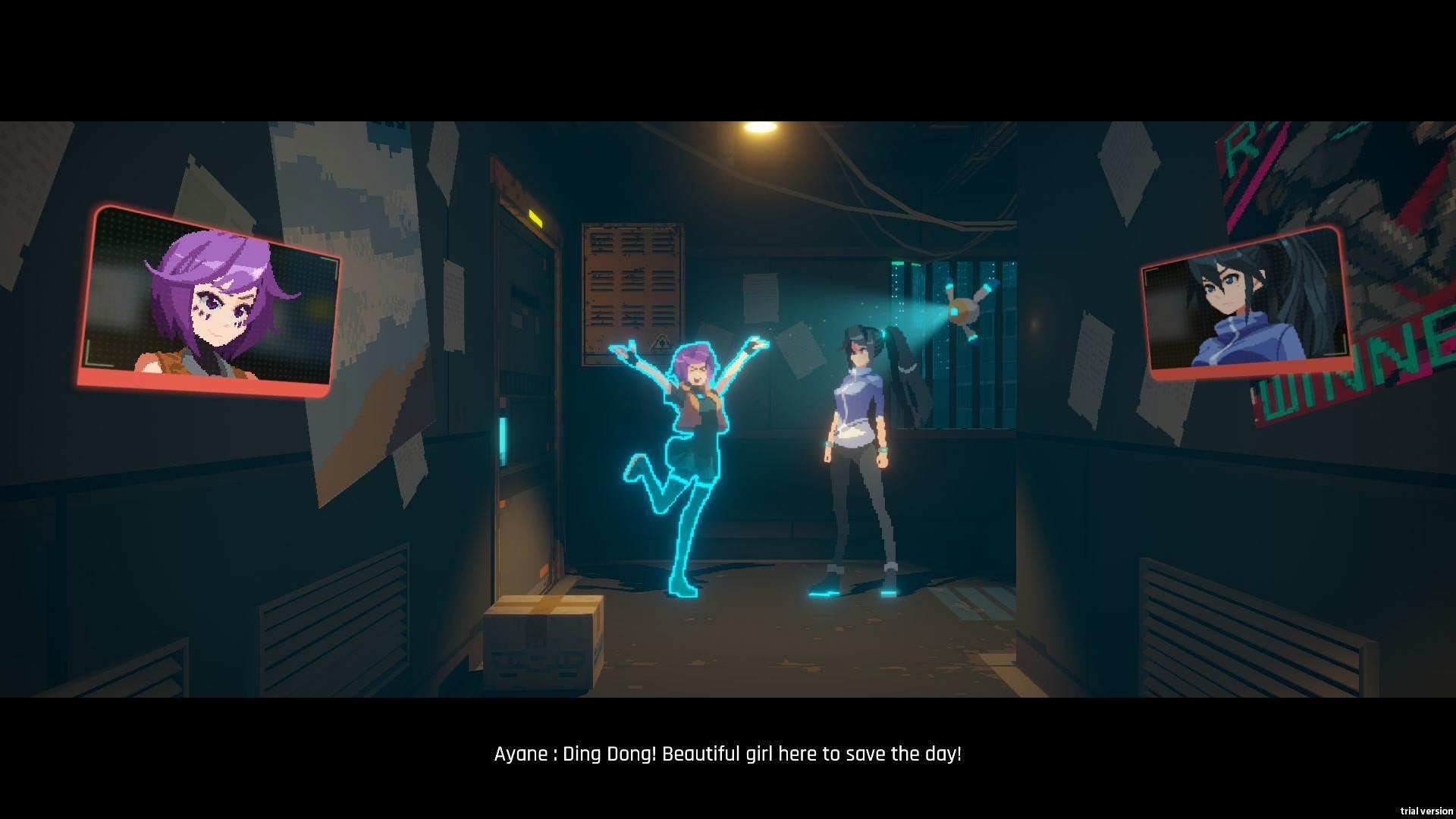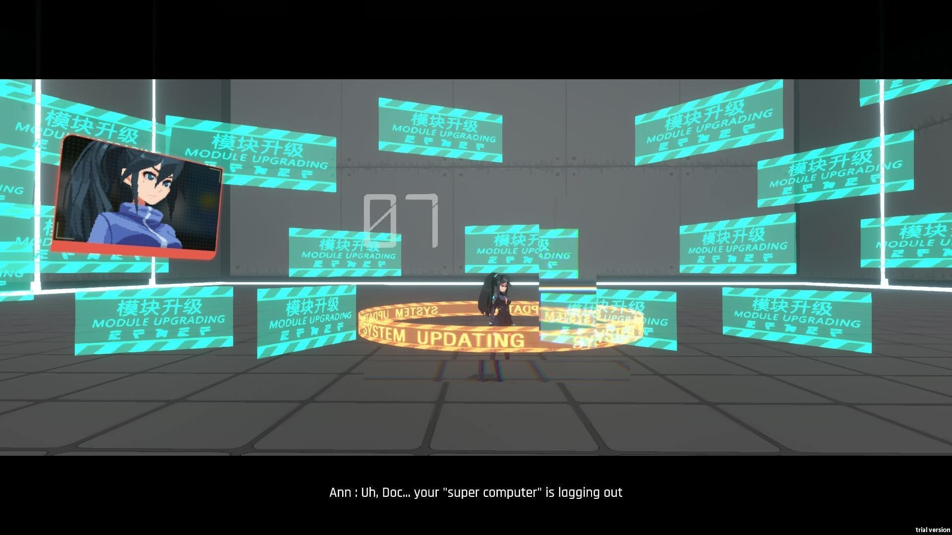 The demo follows Ann as she visits Alan Doyle, her cybernetics doctor, to discover who has been hacking her virtual assistant. Naturally, the good doctor wants to run some tests through combat simulations, and Ann obliges. In what I can only describe as a cyberpunk magical girl transformation, Ann dons her combat suit and dives into the simulation like Neo in The Matrix. A+ for style points.