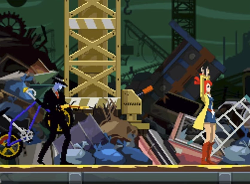 There’s a lot of super complicated deaths in the game, whether it’s Detective Lynne getting crushed by a massive chicken after a police officer crashes into the restaurant when the bug he’s listening to goes haywire, or the minister of justice dying from a heart attack because he gets a threatening phone call about his daughter but can’t reach his medication in time. Fortunately, Sissel can rewind time to four minutes before someone’s death, at which point he can watch what happened, repeat, and try to avert their fate. Thought bubbles give clues as to what he should do next and the game is generous with its continues as Sissel can repeat a sequence as many times as he wants. He also has the ability to jump to different areas by tracing phone calls.