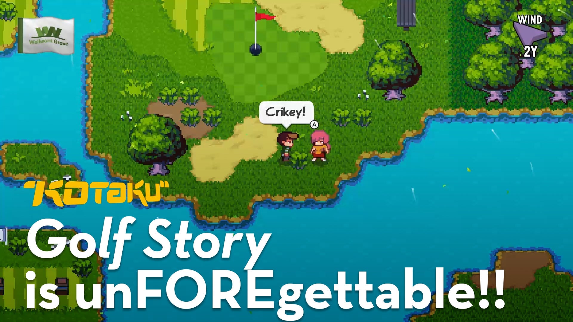 As I said in this video I did on NBA 2K18, I play video games for two reasons: to feel good about myself, and to think about the 1990s. Well, Golf Story is a story about a young man defying his doubters by striving and struggling to become a professional golfer, which feels pretty good, and it looks like a Super-Super Nintendo game, which reminds me of the 1990s. Being set in a modern-ish time period is a pixel-arty video game’s easiest shortcut to reminding me of Earthbound, sure, though reminding me of Earthbound always reminds me of Seinfeld. One of the worst conversations game-likers insisted on having on the subject of video games, about 10 years ago, concerned the hypothetical “Citizen Kane of Games.” Back then I said, as I say now, that we should instead be talking about “The Seinfeld of Games.” Golf Story is maybe the closest I’ve felt yet to a Seinfeld of video games. I feel like I’m just hanging out in this world, and that also I might hit a Titleist into a whale’s blowhole at some point. I talk more about what I mean by that in this video, though if you don’t want to watch the video, feel free to comment what you think the Seinfeld of video games would be.