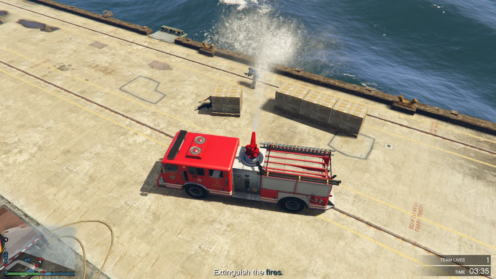 One really fun mission, Burn Rate, has players doing something you rarely do in a GTA game: stop criminals. Players steal a firetruck and head over to the southern San Andreas docks. Once there, you use the truck’s water cannon to save cars that have been set on fire by a rival gang. You can even use the water cannon to knock down and kill enemies. The firetruck doesn’t get much use in GTA Online, and it was nice to see a mission built entirely around it.