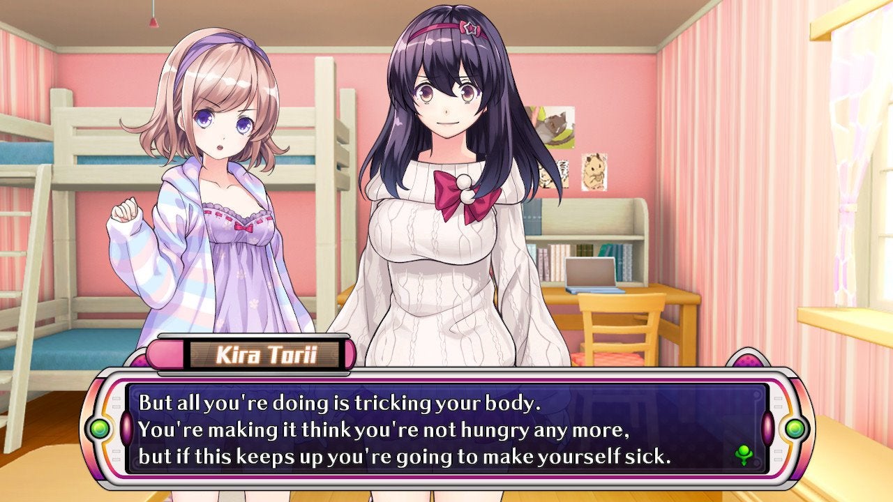 While searching one of the Torii sistersâ rooms, we discover a trash can filled with wrappers for diet gum. Shooting the sister enough times triggers a scene in which we learn that her friend, Amayo Sato, had been in the room cleaning. Hopping over to Amayoâs room, the pixies find her trash can filled to the brim with wrappers. Worried about her weight, Amayo has stopped eating altogether, subsisting on diet gum alone. Thatâs not good. The pixies take the news very seriously.