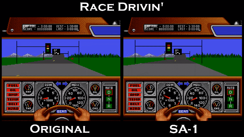 In a video released yesterday, Vilela shows just how powerful the relatively common SA-1 chip could be by comparing footage from the original Race Drivin’ to a conversion they developed for use with the more powerful co-processor. The upgraded hardware boosts the game from around 4 frames per second to upwards of 30, making it look more like an actual video game and less like a slideshow.