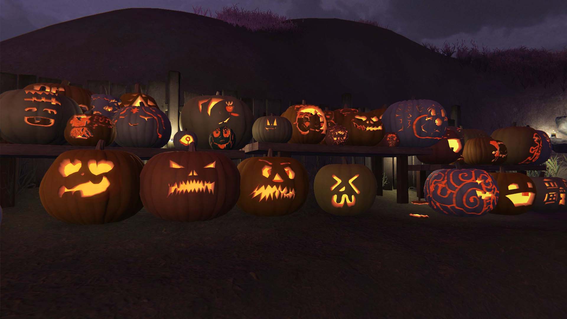 Even better, the jack-o-lanterns you see in the game were carved and placed by real people using the MMO’s fantastic, intuitive, and flexible pumpkin carving tool. Pick a pumpkin, spin it around, and start carving into it. You can also scrape spots of the pumpkin away, giving you more options for shading and decoration. Some people do simple faces or funny jokes, and others create elaborate pieces of art. All of these pumpkins can be liked, and once a day, you can award a medal to your favorite.