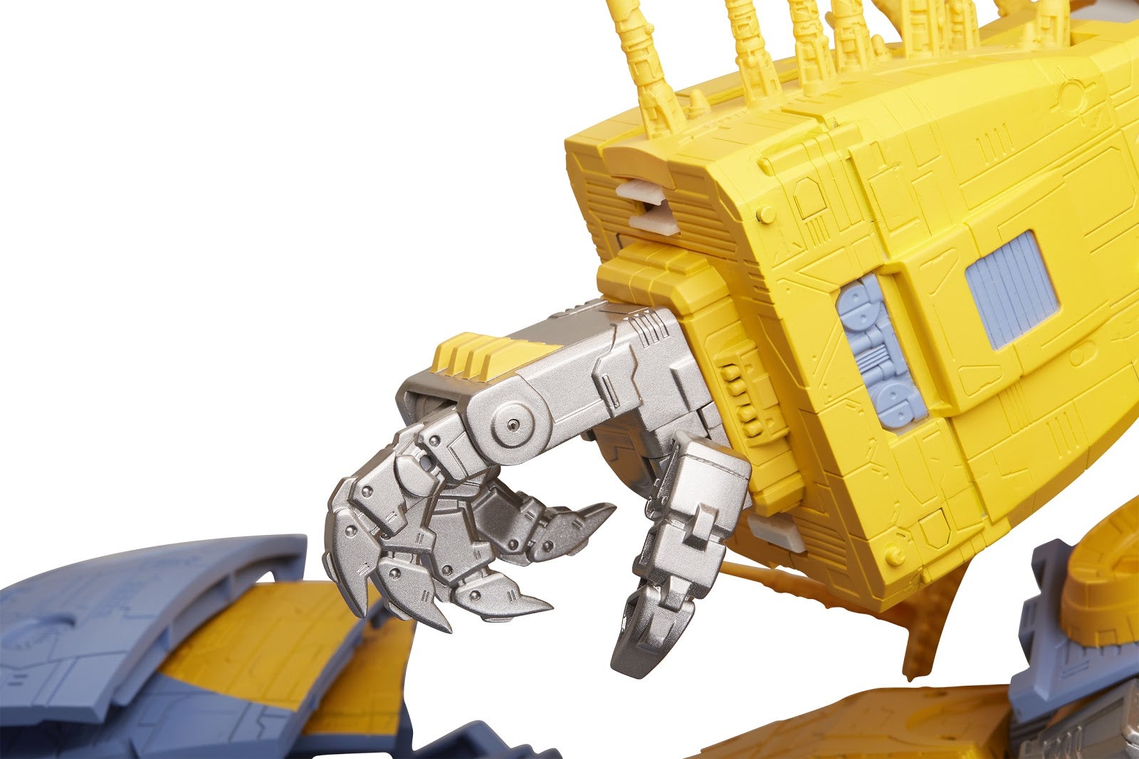 Once he’s got smaller robots in his grasp, he can raise them to his mouth, which opens and closes and features movable teeth. Movable teeth AND movable eyes. He’s got it all.