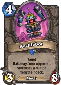 I think specifically with Mech’athun, there was a little bit easier of a time building Mecha’thun decks than we expected. Mecha’thun obviously still exists, but cards like Cataclysm rotating from Warlock and Naturalize going to the Hall of Fame makes that a little bit harder to achieve. And also introducing cards like Hecklebot and Unseen Saboteur—the cards that mess with the opponent’s combos. Unseen Saboteur makes you cast a spell from your opponent’s hand, Hecklebot pulls cards from decks. If you want to interact with those decks—if you’re just getting beat by Mecha’thun, we’d like the answer to go from “play an aggro deck” to: “Okay, I like playing control decks. What ways are there for me to play control decks but also be able to interact with these decks in a way that makes it feel like I’m always at a disadvantage?”