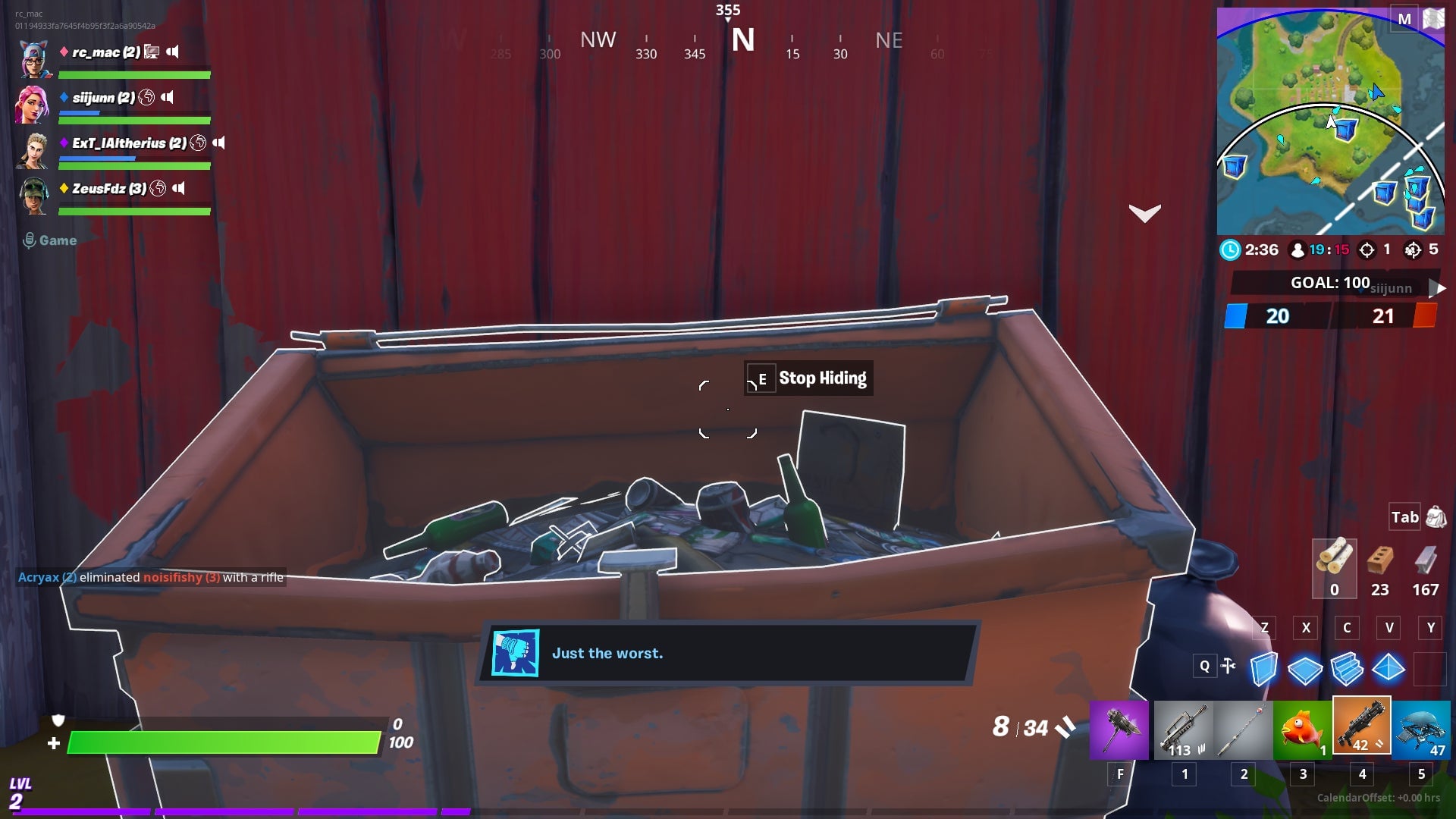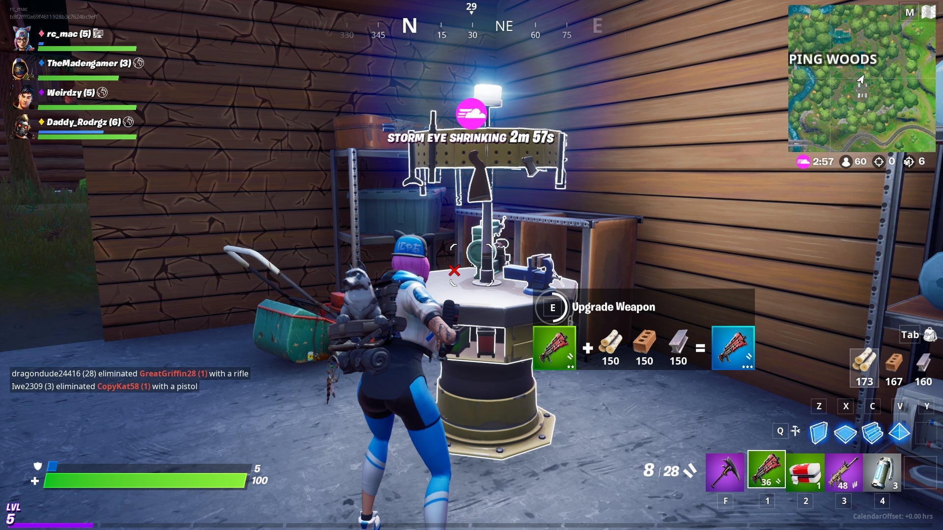 The pickaxe has a dedicated key now. On PC, you used to equip your pickaxe by pressing 1. Now, the key is F. Please do not be me, who goes for their pickaxe only to throw a grenade at themselves instead. (I lived.)