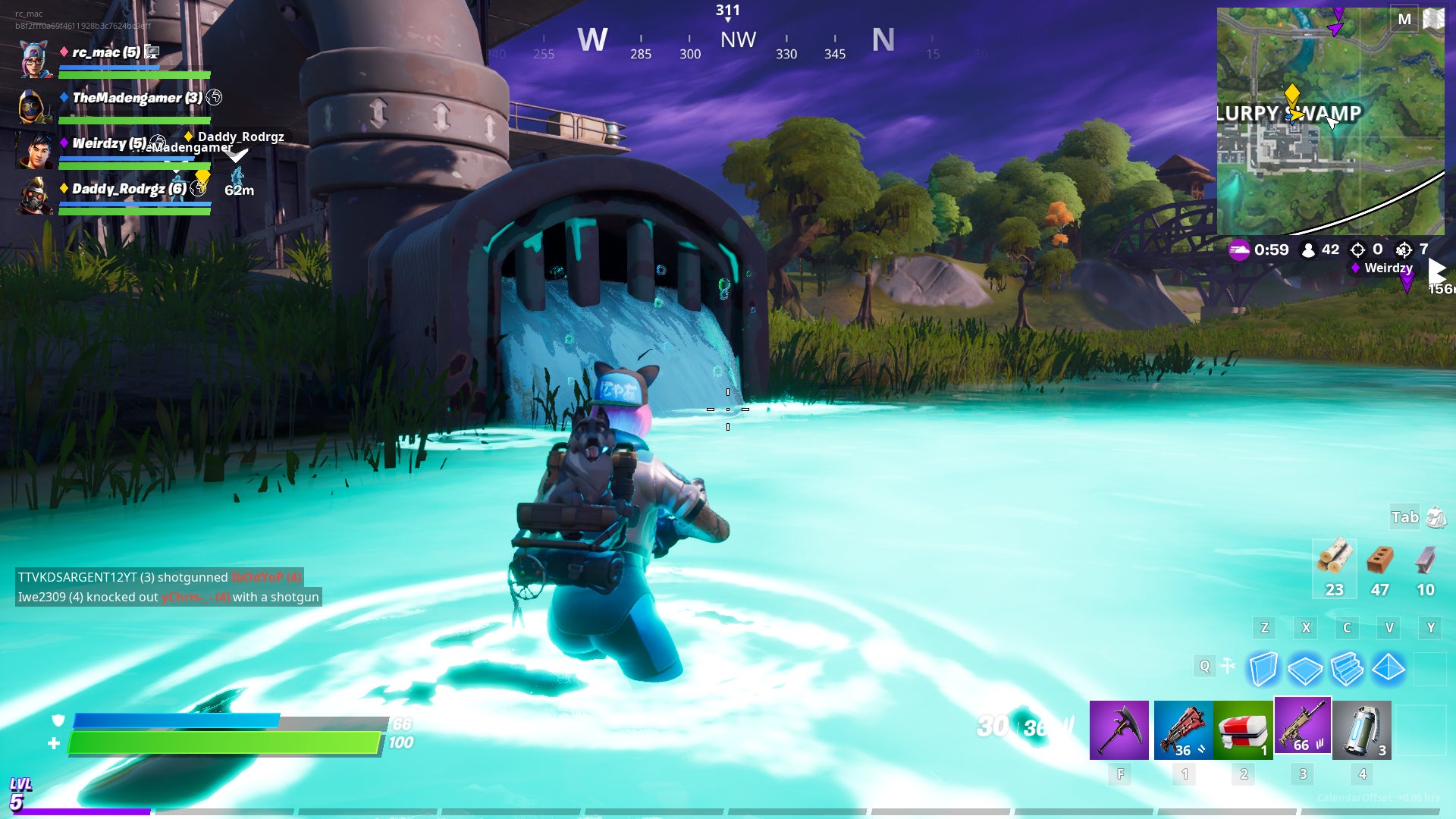 There are 13 new locations on the new map; they’re listed as question marks until you visit them for the first time, which also helps you make progress in an XP-granting mission. The water pouring from some pipes at a spot called Slurpy Swamp looks an awful lot like slurp juice. Turns out it works like slurp juice, too: standing in the glowing water gives you shields.