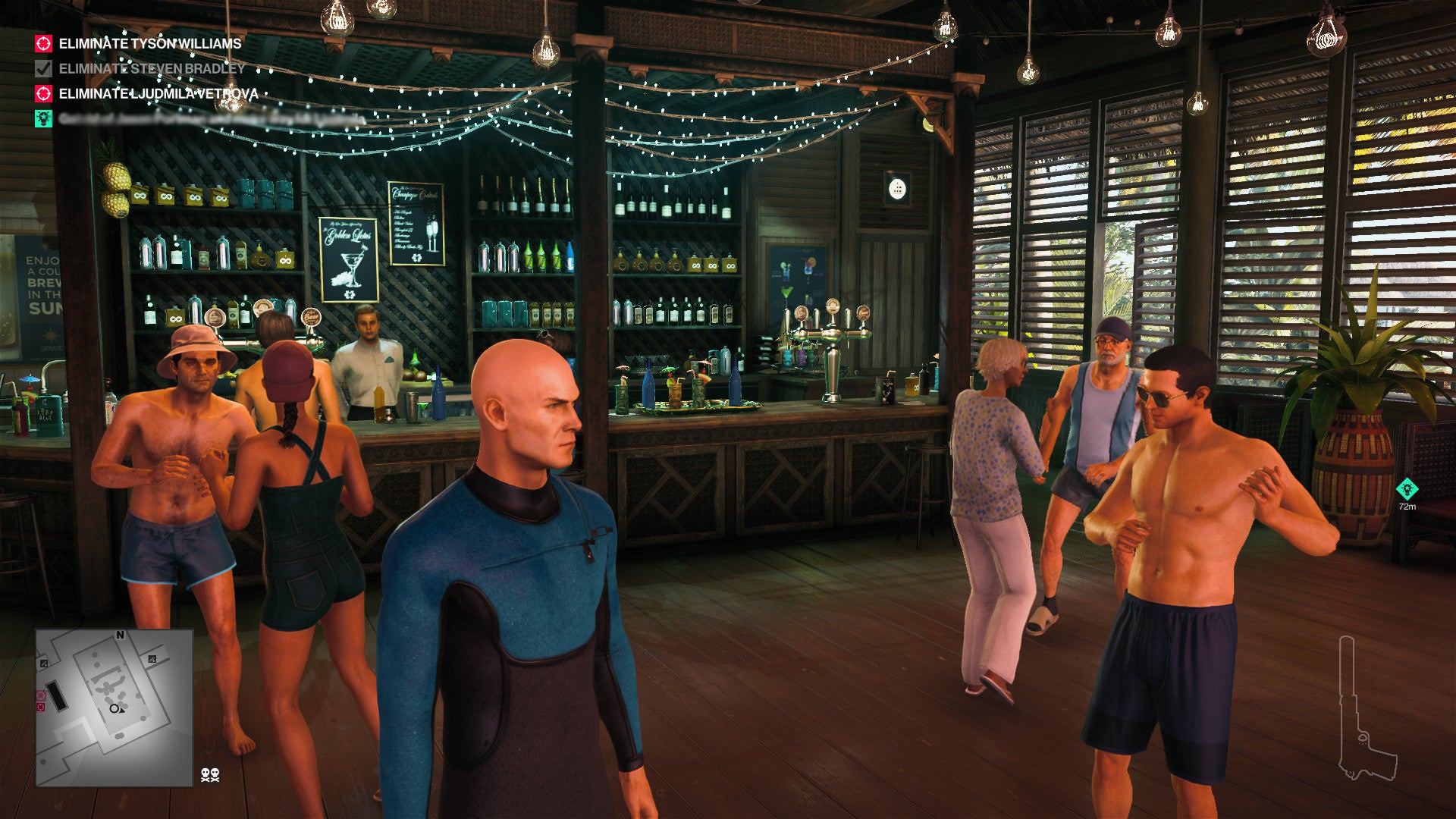 Your targets are, of course, connected to the shadowy Partners and Hitman’s ongoing conspiracy story of betrayal within the Providence organization. Ljudmila Vetrova handles Haven’s clients, Tyson Williams is its CEO, and Steven Bradley handles the computers. They’re spread out across the island, which isn’t large but is dense, packed with hard-to-access buildings and people who can see you almost all the time. This makes for plenty of ways to engineer assassination attempts, but pulling them off without getting spotted can be tricky.