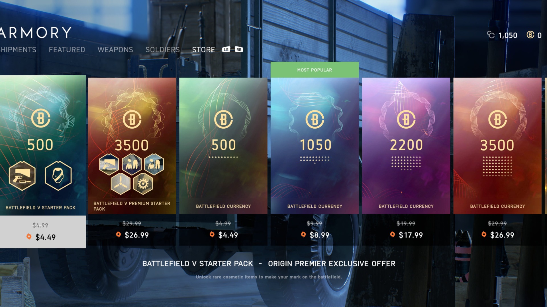 Battlefield V received microtransactions this week, almost five months after the first-person shooter was originally released. Players can now use Battlefield Currency, which can only be bought with real money, to customize the look of their characters, guns, and vehicles.