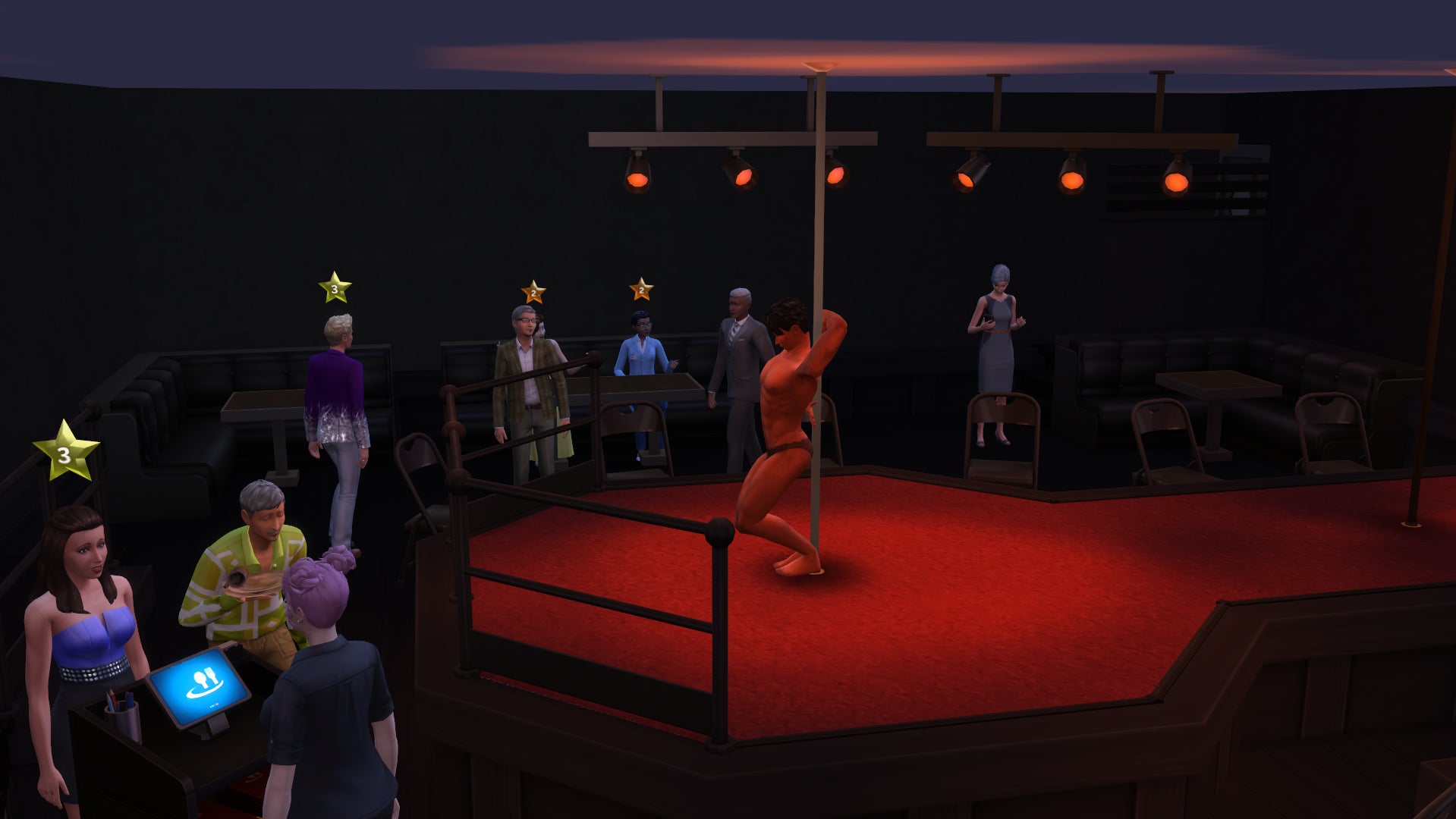 And that’s how Dildo Face became the owner and sole performer in the first Sims strip club in town, Boner Daddies (named after a ramen joint, Bone Daddies, that I used to frequent). It will probably surprise very few of you to know that The Sims 4 doesn’t allow for strip clubs. I downloaded quite a few mods to try to rectify that: pole dancing animations, a stripper career, and, of course, Wicked Whims. Sadly, none satisfied my need for a functioning strip club business: Dildo Face could climb up on the pole and grind his booty to hip-hop all night, but he wouldn’t earn any money for it.