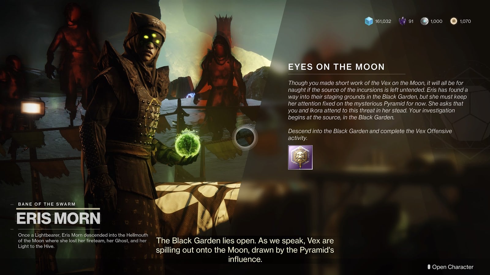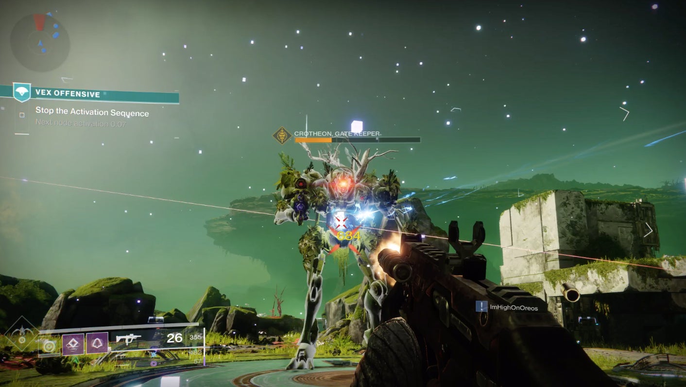 She’s there with some Eyes On The Moon text to read, a raid item to pick up and, voila, the Vex Offensive should now be available.