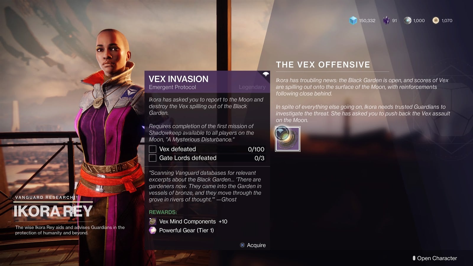 To get the quest, players need to go the game’s main hub, the Tower, and speak to Ikora Rey. She’s got a new Vex-oriented to-do list for you in the form of a Vex Invasion quest step.