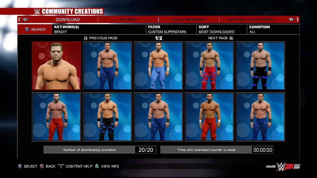 WWE 2K15. Despite all the moderation thatâs been going on, I had no trouble finding copies of the wrestler on the gameâs servers. Thereâs clearly no ban on the manâs name, no auto-filtering that makes âBenoitâ a banned word. I downloaded a Benoit to my PS4.