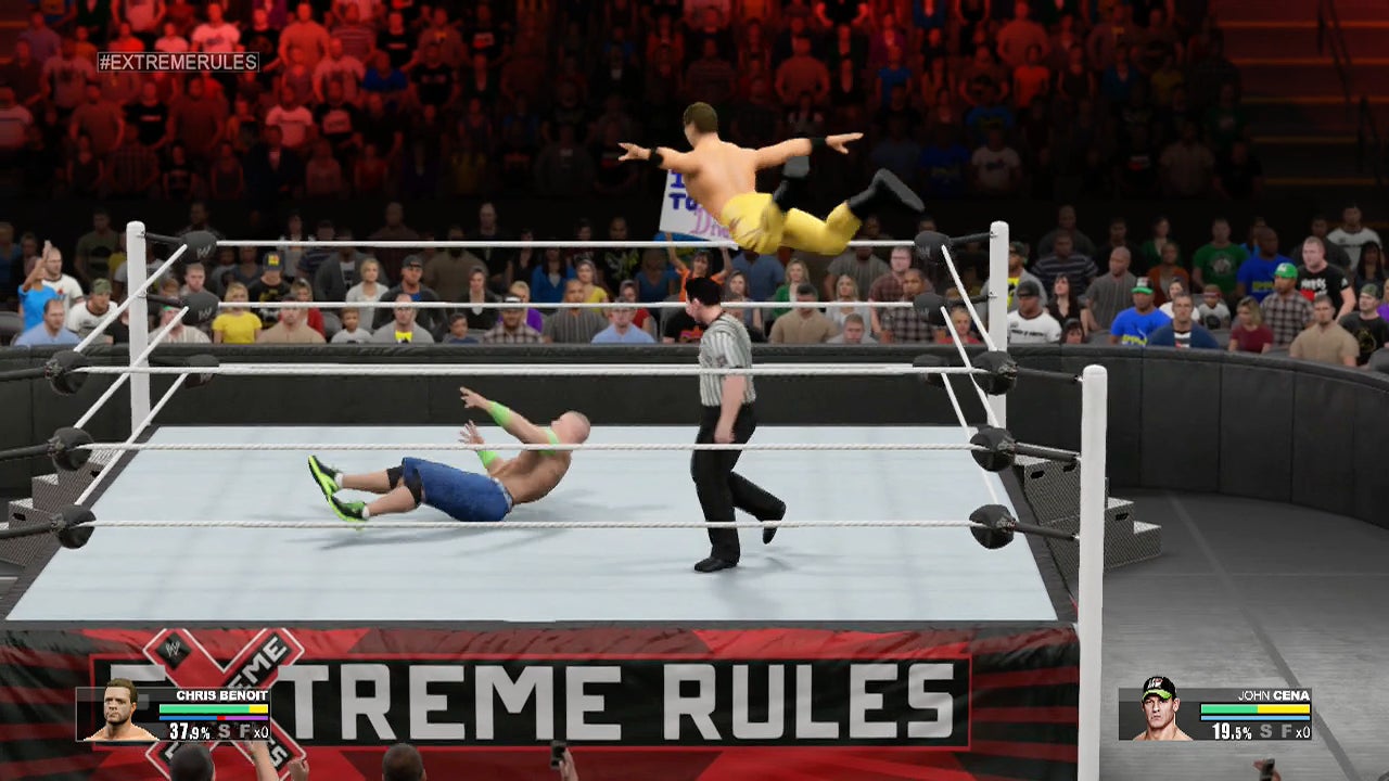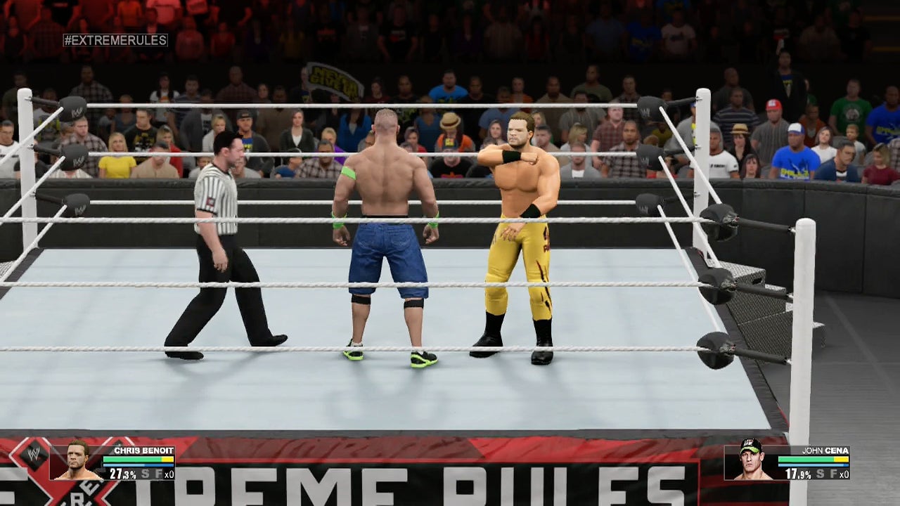 WWE 2K15 again and took control of Benoit in a new match against WWE icon John Cena, I began to think of things differently. I found myself beginning to identify my characterâs success with mine. I wanted to beat Cena. I was going to beat Cena. I was hitting the striking button on my controller and⊠there it was: signature Chris Benoit âknife-edge chops.â