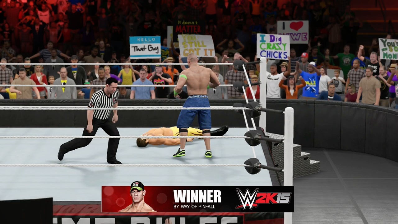 WWE 2K15, and Cena is programmed to be very good. Soon enough, computer-controlled Cena was taking charge of the match. I was fine with that.