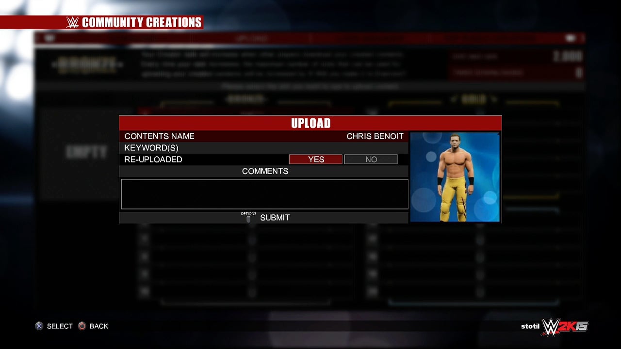 (I reached out to 2K Games several times in the past week as well as to WWE to learn more about the policies regarding uploads to the game and about Benoit. They did not have comment by press time. UPDATE: 2K has declined to comment.)